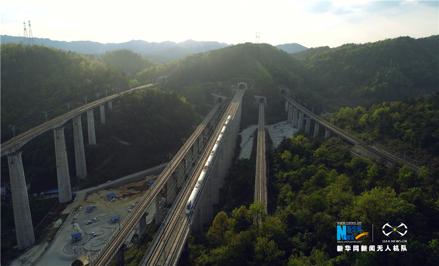 貴州省地處中國(guó)西南腹地,全省高原山地居多,因此高鐵建設(shè)的橋隧占比較高。在貴陽(yáng)市烏當(dāng)區(qū)新添寨,高鐵滬昆線、貴廣客運(yùn)專(zhuān)線、貴開(kāi)城際客運(yùn)專(zhuān)線的隧道和橋梁交織在一起,形成“五洞五橋”并行,形似“五龍出海”的壯觀景象(3月29日攝)。新華網(wǎng)盧志佳 攝