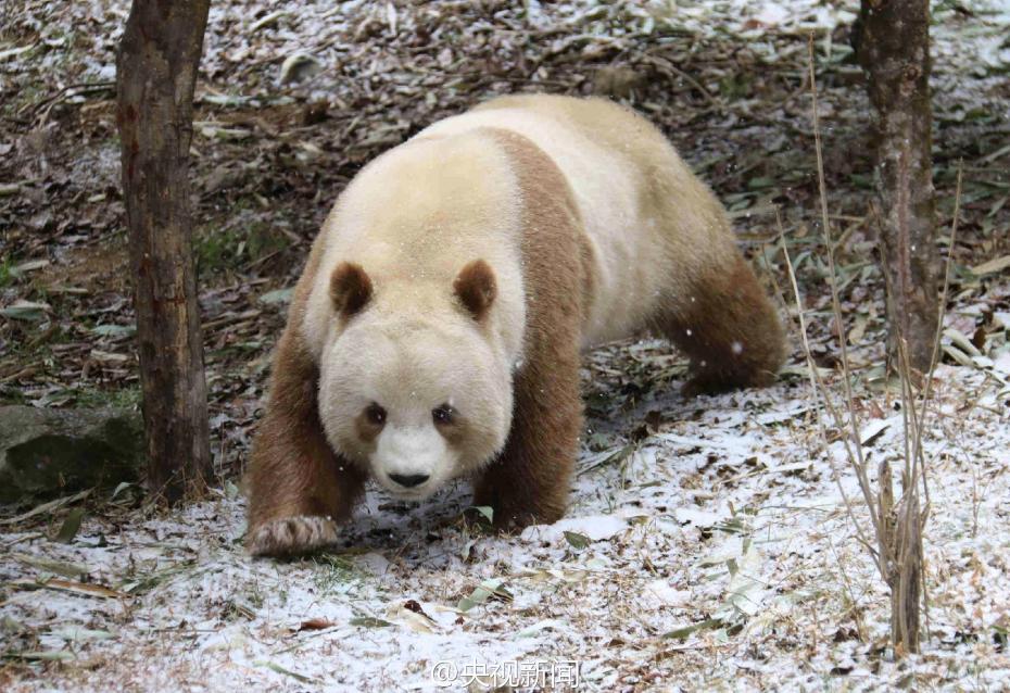 秦嶺大熊貓野化培訓(xùn)佛坪基地,7歲的棕色大熊貓七仔是目前全世界唯一能看到的棕色大熊貓活體。今年是它在基地過的第二個(gè)冬天,每逢下雪,七仔就興奮地滿園子跑,變身“雪花熊”。央視記者李志王志杰 圖片來源:央視新聞官方微博