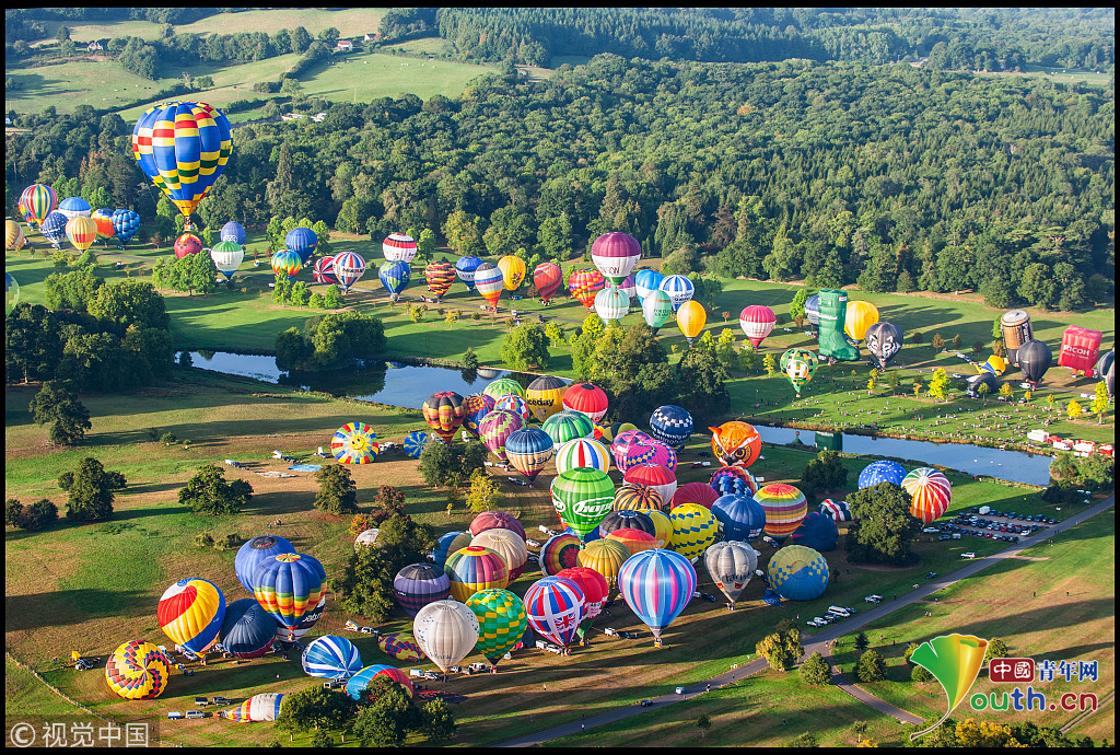英國170多只熱氣球齊飛創(chuàng)紀(jì)錄 如田園夢幻世界