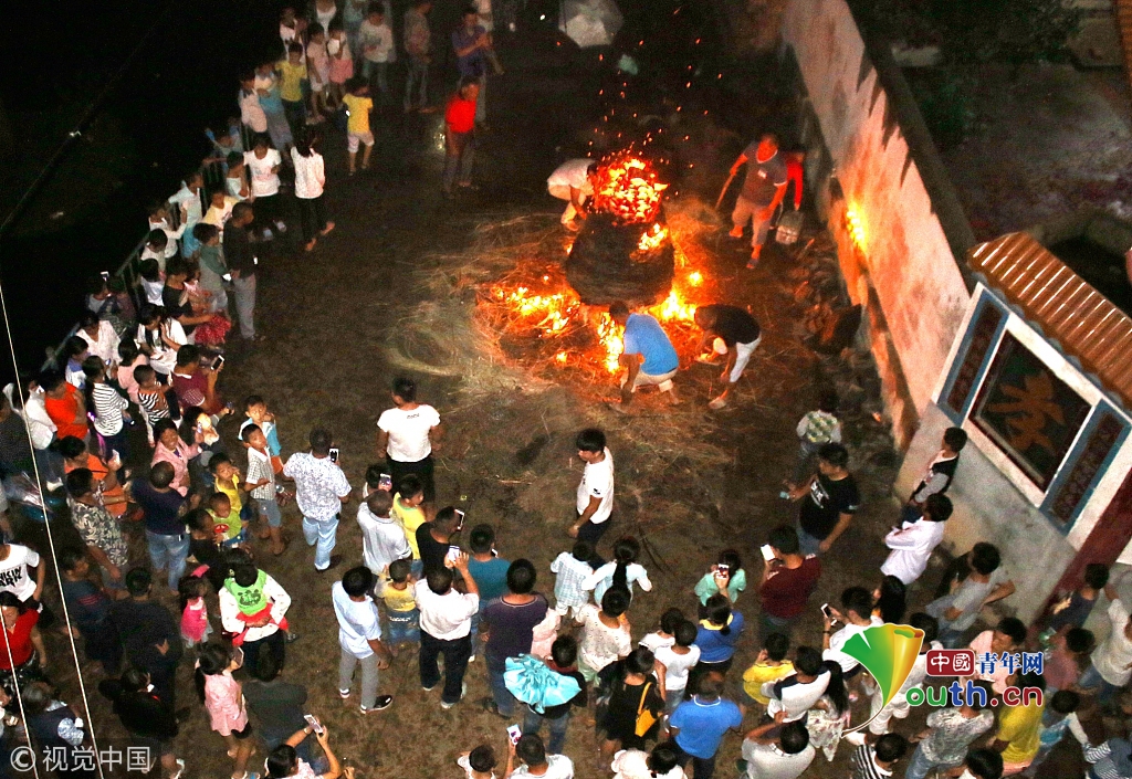 江西省進賢縣西湖李村燒圣塔喜迎中秋節(jié)。燒圣塔是當?shù)貜墓胖两裱永m(xù)下來的中秋習(xí)俗。