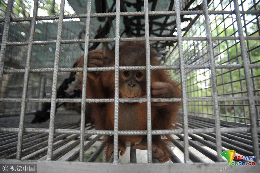 印尼動物救援中心里 猩猩寶寶擠“校車”“上學”超萌