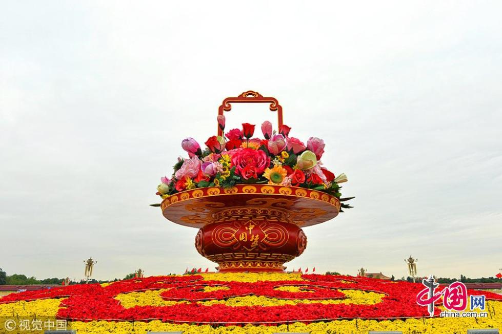 2014年國慶花卉布置中首次使用了3D打印技術,花壇造型更加豐富逼真。大花籃里的“花材”主要選用牡丹、月季、玉蘭、芙蓉、向日葵等,這些“花材”,里面都是金屬結構,外面是經過處理的織物。其中牡丹最大,直徑3.2米,花頭單重300公斤,花籃里共有八九枝這樣的大牡丹,是花籃中的“主花”。 花籃中還有月季、玉蘭、芙蓉等傳統(tǒng)花材的模型,也有部分鮮花。整個花籃完成后,直徑50米,籃盤直徑15米,頂高15米,非常有氣勢。花籃籃體增加了中國結圖案,四周都嵌有“中國夢”字樣,均為燈箱效果,突出強調祝福祖國、實現(xiàn)中國夢的美好意愿。