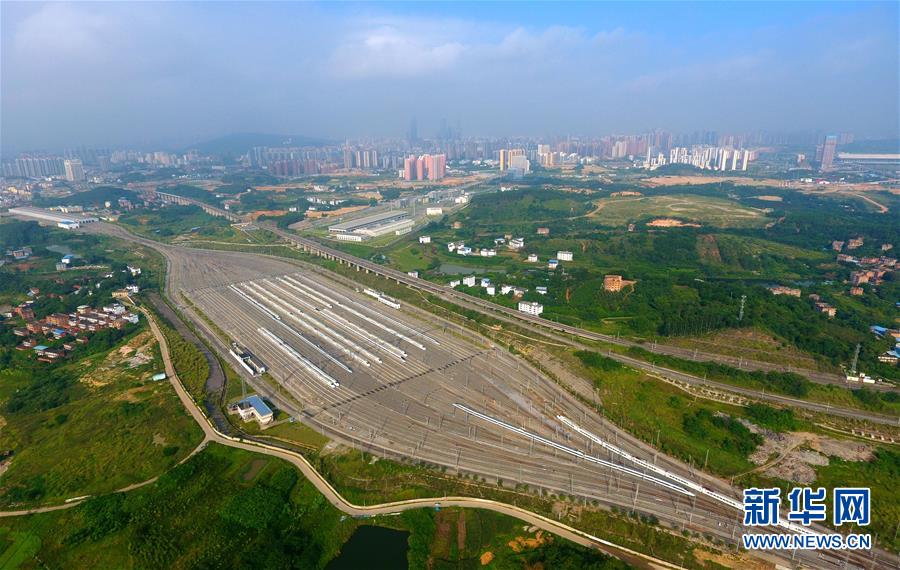 這是廣西南寧動(dòng)車所內(nèi)準(zhǔn)備發(fā)往各地的動(dòng)車組列車(7月1日無人機(jī)拍攝)。 廣西壯族自治區(qū)成立60年來,鐵路建設(shè)發(fā)生翻天覆地的變化。來自中國鐵路南寧局集團(tuán)有限公司的數(shù)據(jù)顯示,1958年廣西鐵路總里程為1346.3公里,如今廣西鐵路總里程達(dá)5191公里。廣西與周邊相鄰省份間實(shí)現(xiàn)動(dòng)車“公交化”開行。此外,北部灣港—重慶班列、東盟海產(chǎn)品冷鏈班列、“百色一號”果蔬專列等的開通和運(yùn)營,強(qiáng)化了鐵路供給的針對性和有效性。鐵路成為助推廣西經(jīng)濟(jì)社會快速發(fā)展的“大動(dòng)脈”。 新華社記者黃孝邦攝