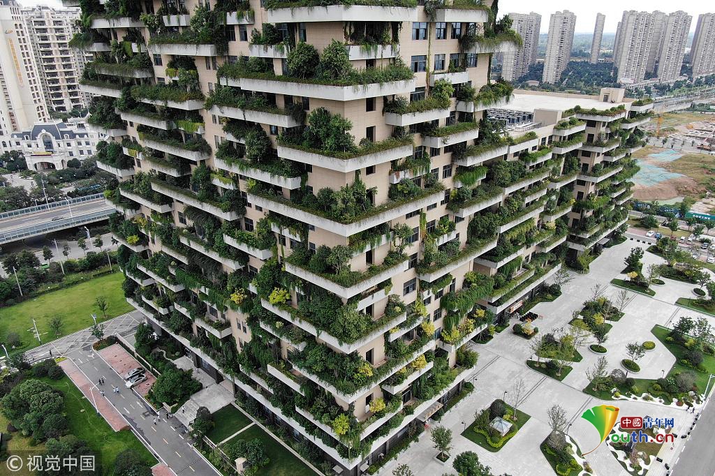 航拍句容“植物建筑”:整棟大樓種滿綠樹小草