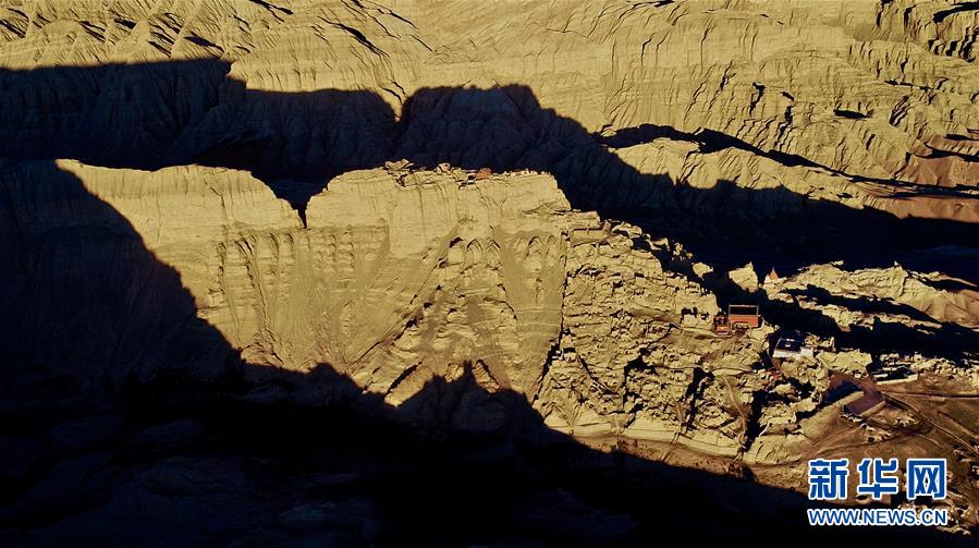 從空中鳥(niǎo)瞰西藏阿里地區(qū)東嘎遺址(9月11日無(wú)人機(jī)拍攝)。 西藏阿里地區(qū)素有“世界屋脊的屋脊”之稱,平均海拔4000米以上。這里河流縱橫、湖泊密布、土林林立。從空中鳥(niǎo)瞰阿里大地,呈現(xiàn)出一幅幅獨(dú)特的美景。 新華社記者 普布扎西 攝