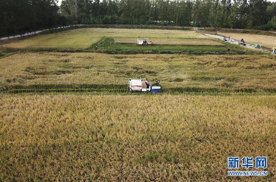 正值秋收時節(jié),安徽省鳳陽縣小崗村水稻陸續(xù)成熟,進(jìn)入收割期。當(dāng)?shù)剞r(nóng)民利用晴好天氣搶收水稻,確保顆粒歸倉。