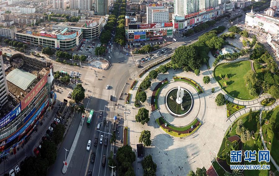 廣西北海市北部灣廣場(9月27日無人機拍攝,拼接照片)。 新華社記者 周華 攝