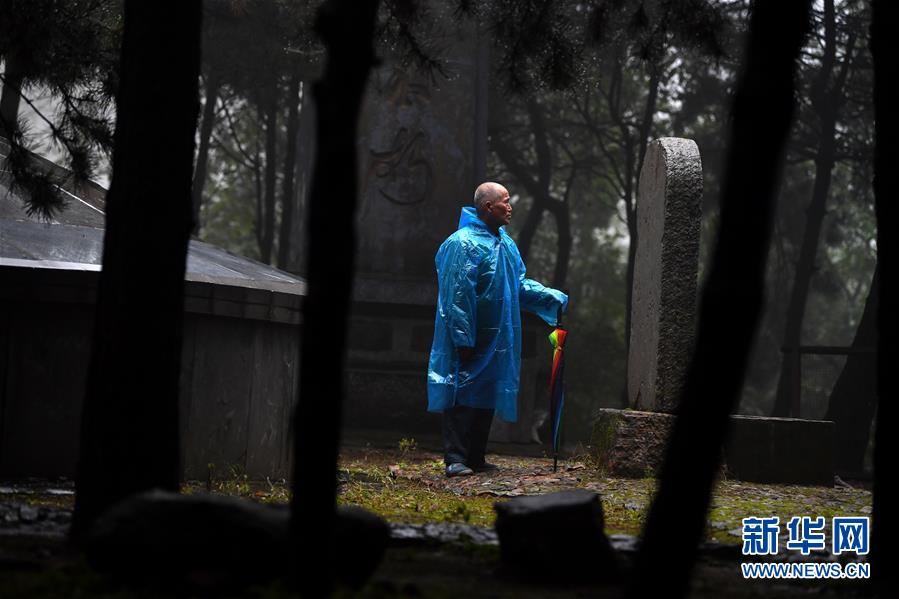 趙乃堂在黃崖洞烈士陵園烈士墓前肅立瞻仰(9月20日攝)。 新華社記者 詹彥 攝