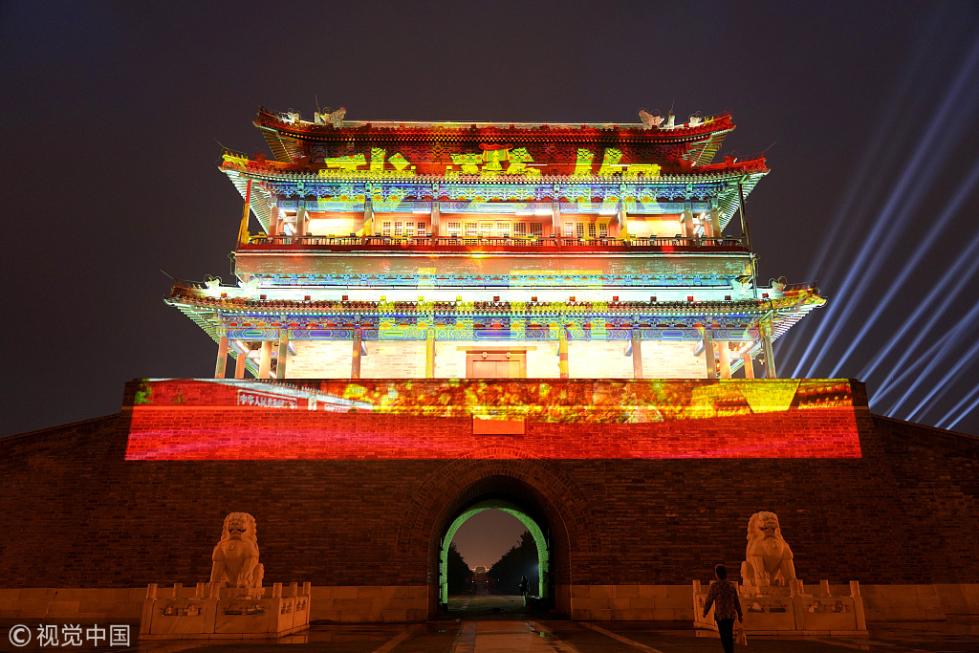 迎國慶!北京多處地標(biāo)建筑上演燈光秀