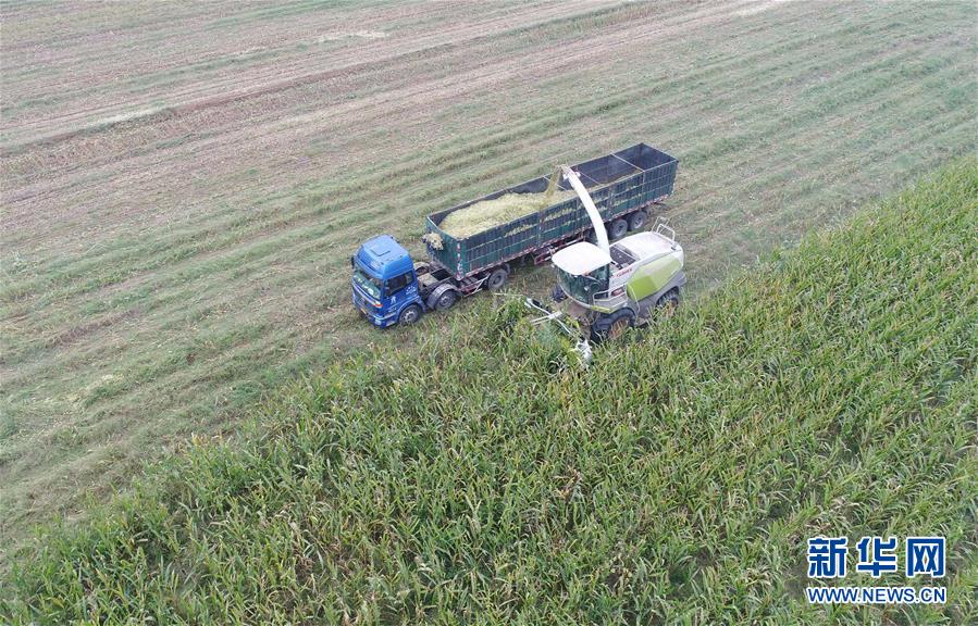10月8日,河北故城縣里老鄉(xiāng)林場村農(nóng)民在收獲青貯玉米(無人機拍攝)。 近年來,河北省故城縣結合市場需求,通過“龍頭企業(yè)+基地+農(nóng)戶”的經(jīng)營模式,鼓勵引導農(nóng)民發(fā)展訂單式青貯玉米種植,不僅增加了種植戶收入,而且為養(yǎng)殖企業(yè)提供了優(yōu)質(zhì)飼料。目前,故城縣已發(fā)展青貯玉米種植面積6萬余畝。 新華社記者 朱旭東 攝