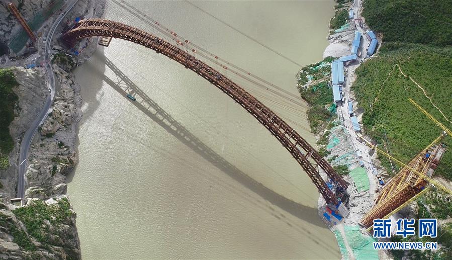9月28日無(wú)人機(jī)拍攝的川藏鐵路拉林段重點(diǎn)標(biāo)志性工程藏木特大橋。 當(dāng)日,隨著最后一節(jié)鋼管拱的對(duì)位和鎖定完畢,川藏鐵路拉林段藏木特大橋成功合龍,標(biāo)志著大橋主體結(jié)構(gòu)施工取得了關(guān)鍵性勝利。藏木特大橋由中國(guó)中鐵廣州局集團(tuán)承建,拱高112米,橋橫跨雅魯藏布江峽谷,水深66米。 新華社記者普布扎西攝