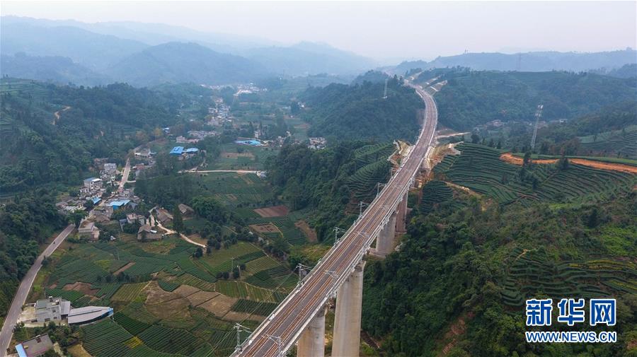 這是10月11日無人機(jī)拍攝的川藏鐵路成雅段一座鐵路橋。新華社記者薛玉斌攝