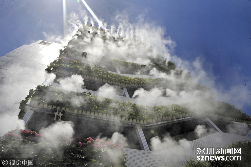 相關鏈接 10層高樓長滿綠植“仙氣飄飄” 這座建筑在抖音火了! 深圳新聞網(wǎng)訊 2018年6月10日,西安,高樓外長滿綠植,還縈繞著霧氣。這段只有6秒的短視頻在抖音火了,網(wǎng)友評論這是“第四代住房”,其實這是西安市眾創(chuàng)示范街區(qū)的一處安裝了智能霧森系統(tǒng)的西北最大戶外垂直綠化。 夏天能區(qū)域降溫5℃至10℃ 還可有效抑制PM10 “仙氣飄飄”、“西安天氣有多熱,房子都冒煙了”,這是一段抖音小視頻里網(wǎng)友的評論留言。視頻中一棟10層高的樓外側樓梯處掛滿了綠植,同時綠植上方還有噴霧。藍藍的天空當做背景,引來不少人上前拍照,配著背景音樂的確讓人感覺清涼無比。