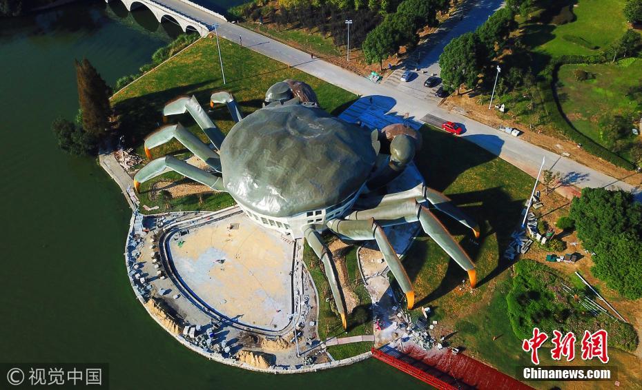 據(jù)了解,這是建造中的大閘蟹生態(tài)館,預計未來將在大閘蟹的白肚內容納三層空間,集休閑、娛樂,以及有關大閘蟹體驗于一體的設施。圖片來源:視覺中國