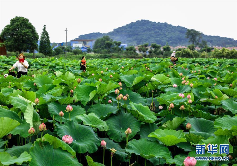 6月3日,游客們在荷花基地里游覽觀賞。新華社記者 徐昱 攝