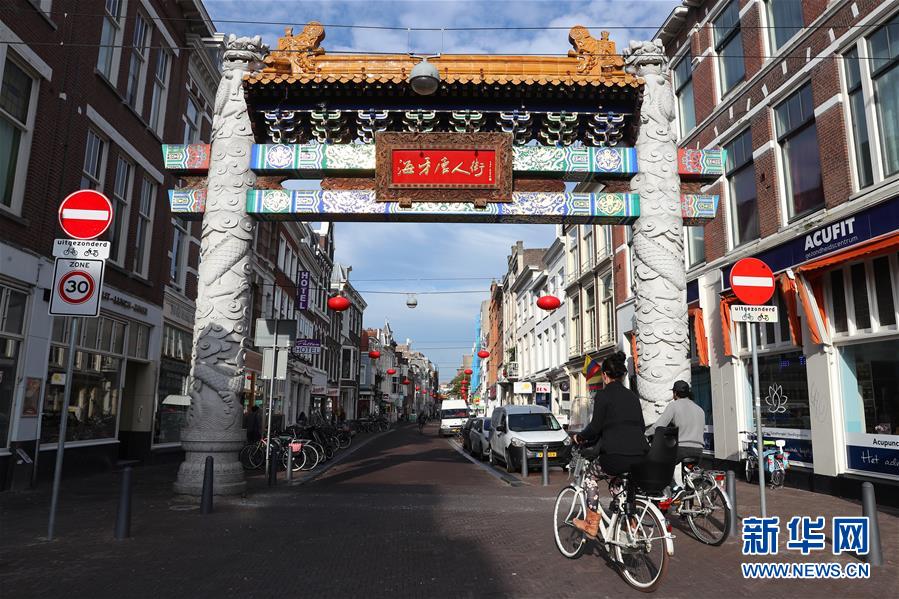 10月13日,在荷蘭海牙,人們經(jīng)過(guò)唐人街的牌坊。