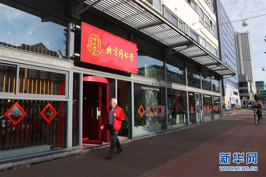 10月15日,在荷蘭海牙的唐人街,行人經(jīng)過(guò)一家中醫(yī)館。新華社記者鄭煥松 攝