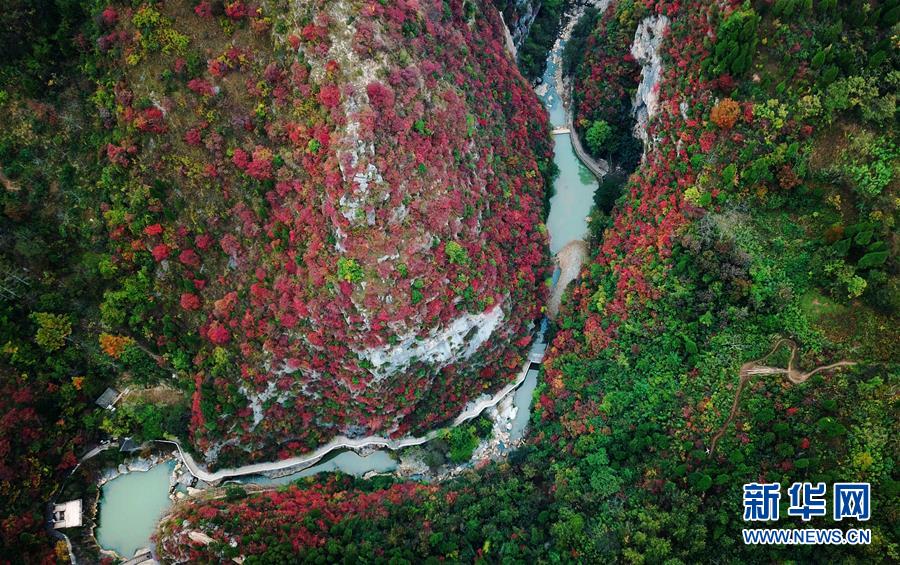 這是西狹頌景區(qū)秋景(10月16日無(wú)人機(jī)拍攝)。  新華社記者 陳斌 攝