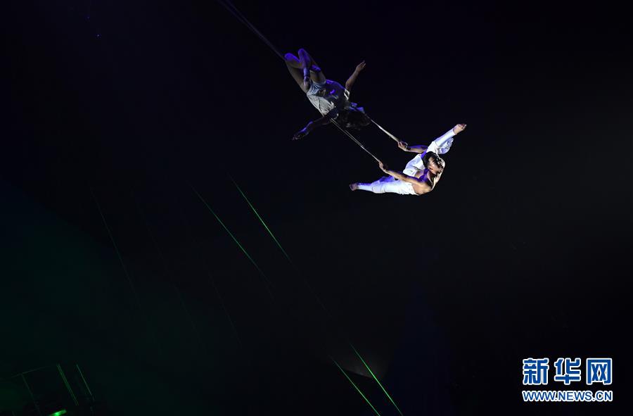 10月16日,演員在濮陽國際雜技藝術(shù)節(jié)上表演雜技《男女雙人秋千》。 新華社記者 朱祥 攝