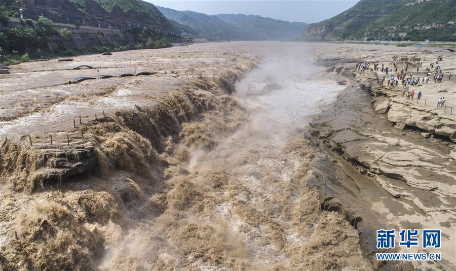這是7月19日無人機(jī)拍攝的黃河壺口瀑布群。 新華社記者 陶明攝