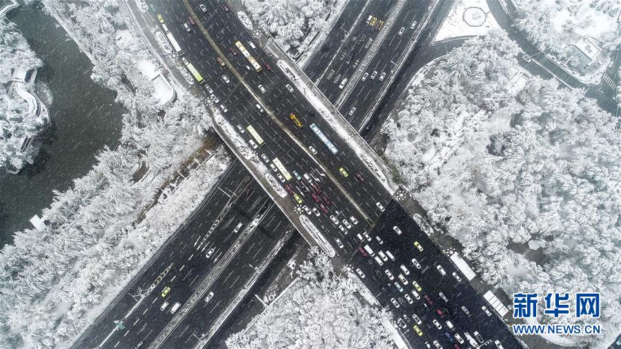 從空中俯瞰雪后的烏魯木齊西大橋(10月18日無人機(jī)拍攝)。10月18日,新疆烏魯木齊迎來一場降雪。 新華社記者 江文耀 攝