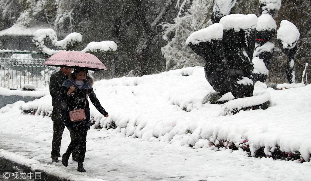 新疆烏魯木齊迎暴雪 市區(qū)道路大樹遭“折腰”