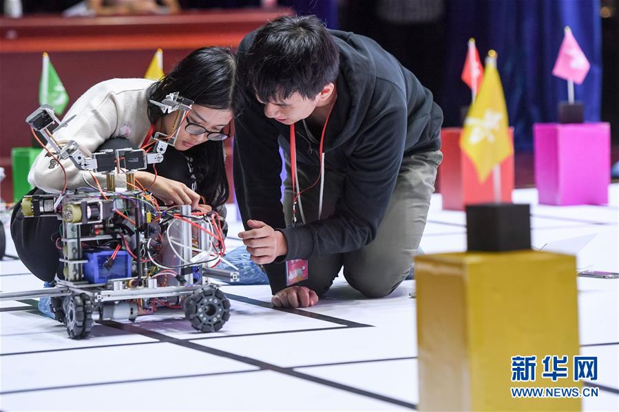 當日,中國科學技術(shù)大學第十八屆RoboGame機器人大賽舉行,該校21支學生代表隊帶著他們設計和制作的機器人參賽。新華社記者張端攝