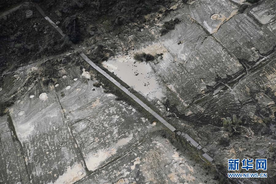 10月20日,西藏雅魯藏布江米林縣堰塞湖自然過流,露出通往加拉村的道路。 10月19日13時(shí)30分,西藏雅魯藏布江米林縣堰塞湖開始自然過流。記者從應(yīng)急管理部牽頭的聯(lián)合工作組獲悉,截至20日7時(shí),雅魯藏布江堰塞湖壩前水位已下降56米,估算留存水量1.6億立方米,堰塞湖洪水威脅得到緩解,防洪安全風(fēng)險(xiǎn)大大減輕,并將繼續(xù)降低。 10月20日,記者乘坐直升機(jī)從空中拍攝了雅魯藏布江堰塞湖自然過流的畫面。 新華社記者普布扎西攝