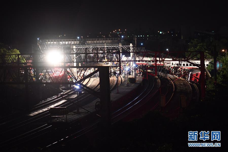 這是10月21日拍攝的列車出軌翻覆事故現(xiàn)場。 據(jù)臺灣宜蘭縣政府官員21日22時42分許在事故救援現(xiàn)場通報,普悠瑪6432次列車出軌翻覆事故已致18人死亡、164人受傷,其中171人已確認(rèn)身份。據(jù)臺鐵介紹,發(fā)生事故的普悠瑪6432次列車21日下午3時9分從樹林出發(fā)開往臺東,下午4時50分在宜蘭新馬車站出軌,其中有車廂翻覆。事故原因還在調(diào)查中。 新華社記者金良快攝