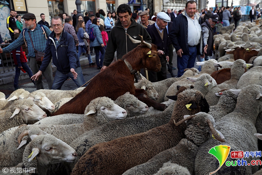成百上千只綿羊穿越馬德里市街,展示古老的游牧習(xí)俗。