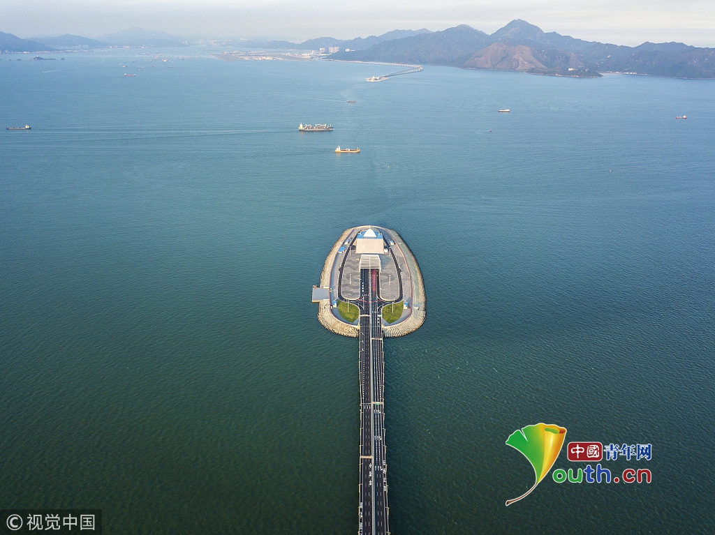 2018年5月22日,廣東珠海,東西人工島中間隔著6.7公里的海底隧道,通行萬噸巨輪。
