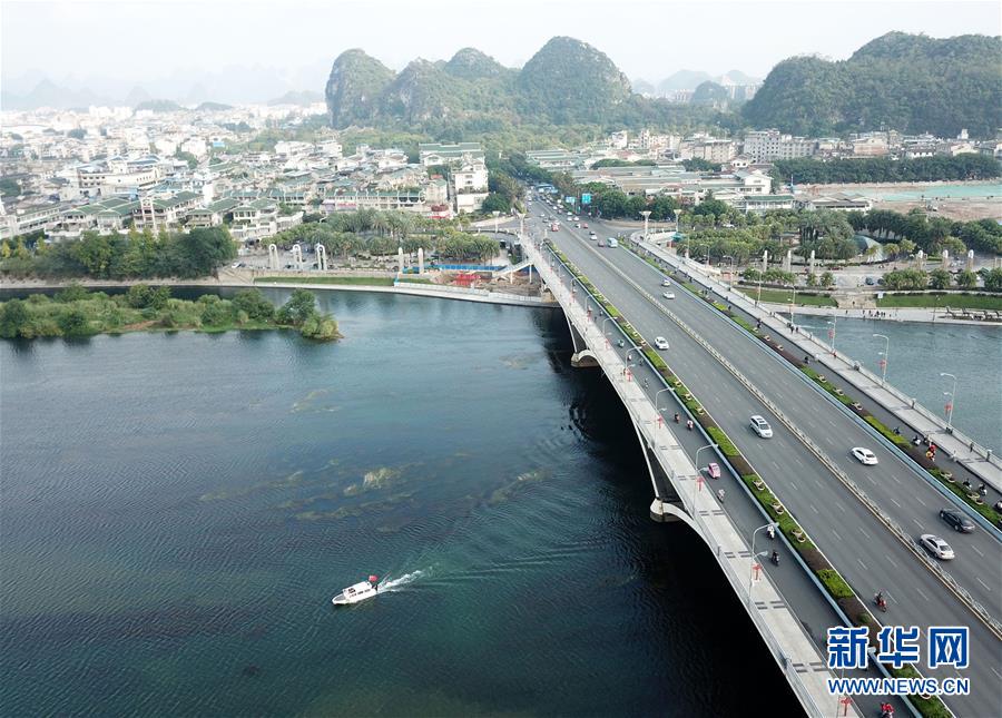 船只從橫跨漓江的廣西桂林市解放橋旁駛過(10月17日無人機(jī)拍攝)。 江作青羅帶,山如碧玉簪。1100多年前,唐朝詩(shī)人韓愈寫盡桂林山水之美。千百年來,桂林的青山綠水成為歷朝歷代文人騷客筆下的“人間仙境”。 保護(hù)好桂林山水,既是對(duì)祖國(guó)大好河山負(fù)責(zé),更是對(duì)歷史負(fù)責(zé)。近年來,尤其是黨的十八大以來,桂林嚴(yán)守生態(tài)底線,以前所未有的力度截污治河,保護(hù)漓江最美山水,推動(dòng)城鄉(xiāng)統(tǒng)籌協(xié)調(diào)發(fā)展,不斷擴(kuò)大對(duì)外開放合作力度,努力在青山綠水里走出一條生態(tài)文明路。 新華社記者 周華 攝
