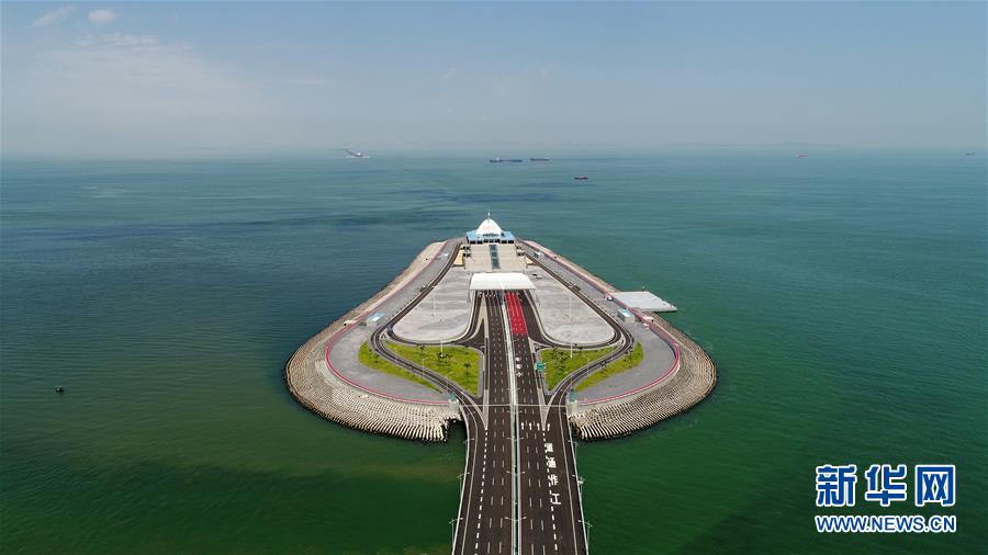 從港珠澳大橋東人工島遙望西人工島,中間是海底隧道(2018年7月11日無人機拍攝)。 金秋十月,伶仃洋上海天一色、潮聲陣陣,依傍著這片中國南海水域的城市群迎來深具意義的一天。 10月23日上午,港珠澳大橋開通儀式在廣東珠海舉行,中共中央總書記、國家主席、中央軍委主席習(xí)近平出席儀式,宣布大橋正式開通。 碧波之上,一橋飛架香港、澳門、珠海三地,以氣貫長虹的“中國跨度”,飛越滄海百年的歷史風(fēng)云,展現(xiàn)當(dāng)代中國的雄健風(fēng)采。 新華社記者梁旭攝