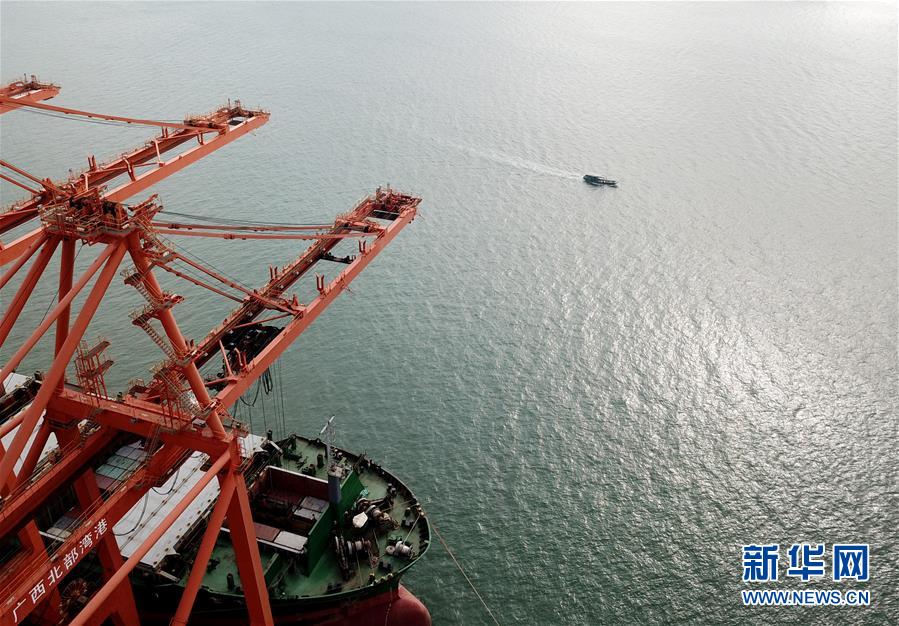 這是10月24日無人機拍攝的廣西防城港碼頭。目前防城港已建成一批鐵礦石、煤炭、硫磺、糧食、化肥、液體化工等貨種的大型專用倉儲和裝卸船系統(tǒng)。 新華社記者 魏海 攝
