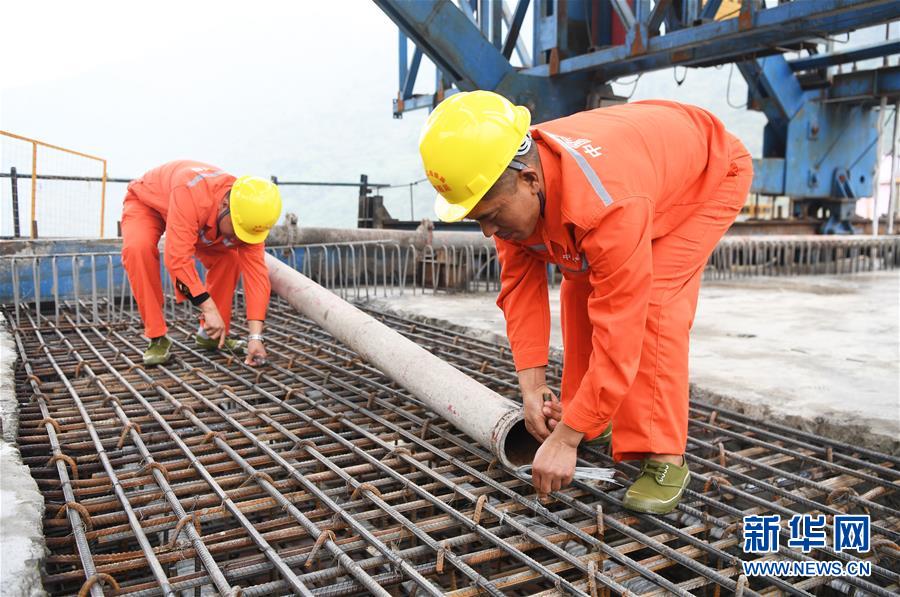 10月23日,在重慶涪陵,施工人員在渝懷鐵路涪秀二線重點工程——烏江右線大橋主跨合龍現(xiàn)場作業(yè)。 當日,由中鐵四局承建的渝懷鐵路涪秀二線重點工程——烏江右線大橋主跨成功合龍,標志著大橋主體工程全部順利結束。烏江右線大橋項目全程460.1米,主跨192米,跨越烏江和319國道。在兩年多的建設過程中,施工人員攻克了“不等高墩”“不對稱邊跨”“邊跨入隧”等多個技術難題。 新華社記者王全超攝