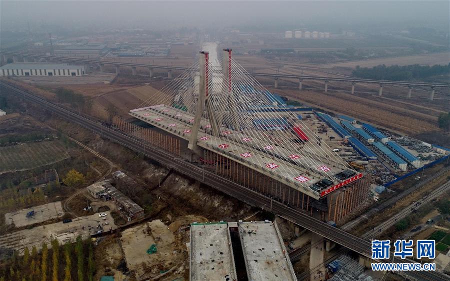 這是10月24日拍攝的鄭萬高鐵跨徐蘭高鐵轉體施工現(xiàn)場。