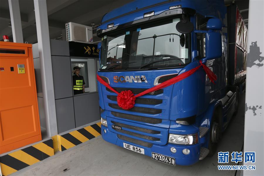 10月24日,港珠澳大橋珠海公路口岸通車首票出口貨物抵達(dá)一站式貨車出境驗放通道。當(dāng)日9時,港珠澳大橋正式通車。 新華社記者張加揚(yáng)攝