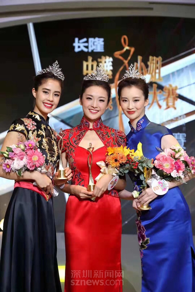 “2018中華小姐”三甲揭曉:8號盧琳(中)、11號何莉(左)、2號蒲梓葉(右)