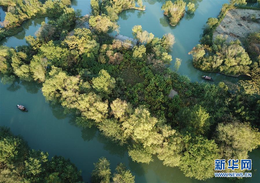 這是10月29日無人機(jī)拍攝的西溪濕地。新華社記者翁忻旸攝