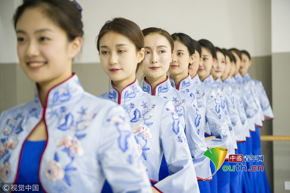 來自浙江傳媒學(xué)院的禮儀志愿者們正在進行緊張有序的集中訓(xùn)練。圖片作者:浙江日報 馮賀/視覺中國