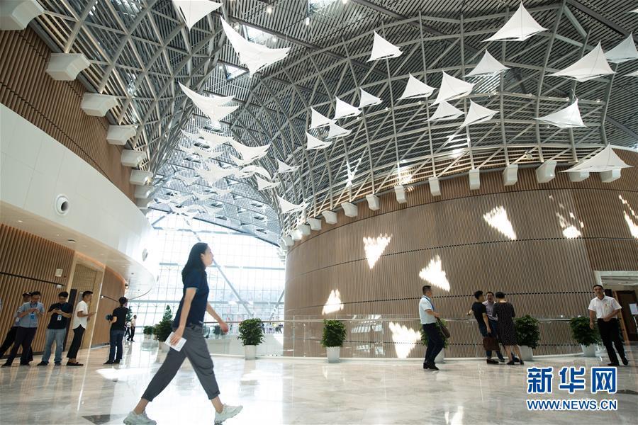 2018年10月9日,浙江湖州,聯(lián)合國世界地理信息大會會場設(shè)計頗為壯觀。11月,聯(lián)合國世界地理信息大會將在德清縣舉行,如今該大會會址已啟用,各項設(shè)施已基本完備。
