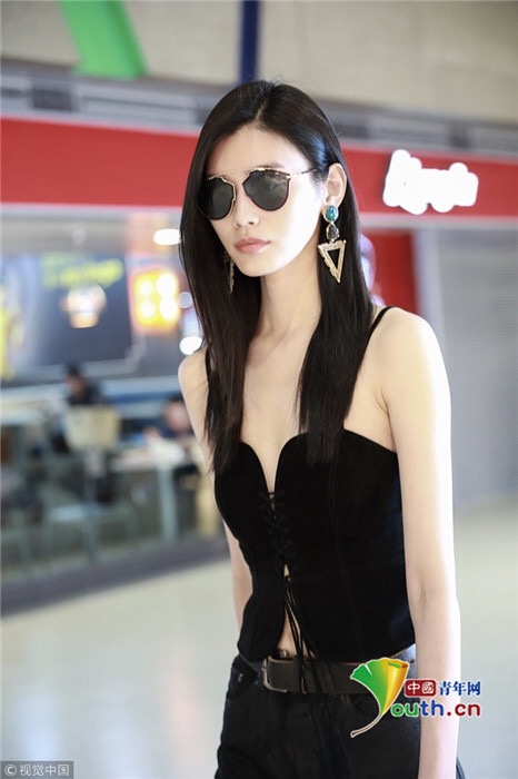 2018年7月25日,上海,奚夢瑤現(xiàn)身機場,她穿吊帶馬甲配過膝長靴,頻撩發(fā)似女特工。