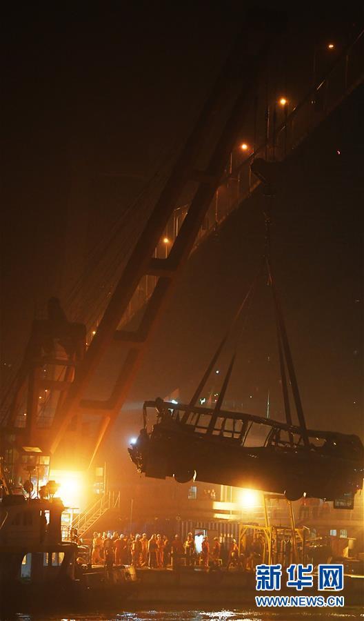 10月31日23時30分左右,記者在重慶萬州江面的打撈現(xiàn)場看到,隨著浮吊船的吊索緩緩提升,墜江的公交車被打撈出水面。 10月28日10時8分,重慶市萬州區(qū)一輛公交車行駛至長江二橋時,與一輛小轎車相撞后墜江。經公安機關初步核實,失聯(lián)人員15人。