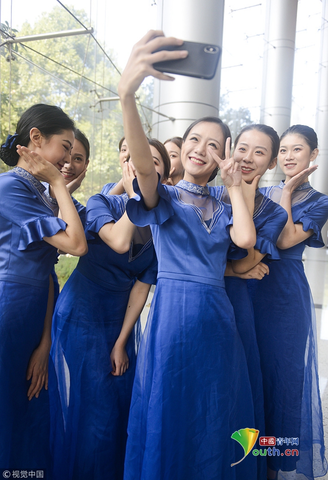 高顏值禮儀志愿者備戰(zhàn)第五屆世界互聯(lián)網(wǎng)大會