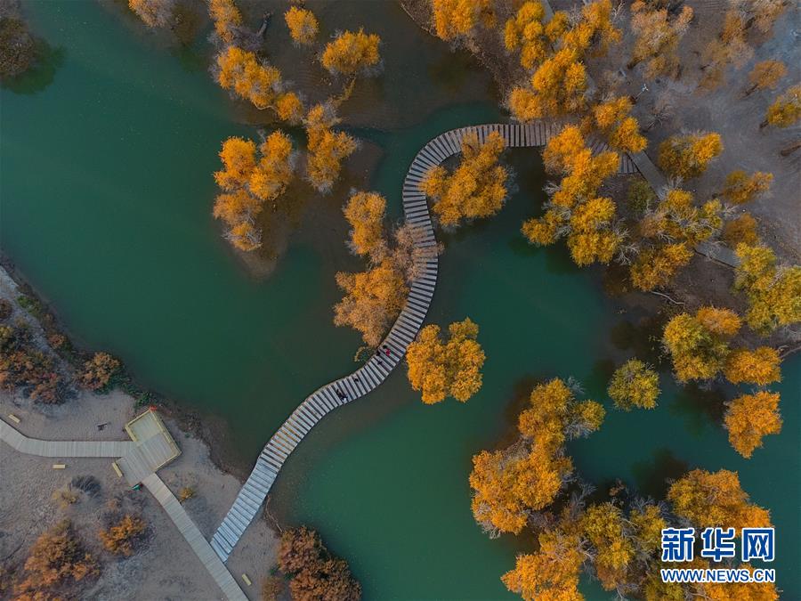 新疆尉犁縣胡楊林深處的一條小路(10月25日攝)。 10月中下旬,靜靜的塔里木河中下游一片金黃。胡楊深處,條條小路蜿蜒綿長通向遠(yuǎn)方,引人入勝。 塔里木河是中國最長的內(nèi)陸河,這一區(qū)域原始胡楊林分布較為集中。隨著塔里木河連續(xù)19次向下游生態(tài)輸水,為胡楊林“解渴”,塔河兩岸生態(tài)得到明顯改善,沙地面積逐年減少。 新華社記者趙戈攝