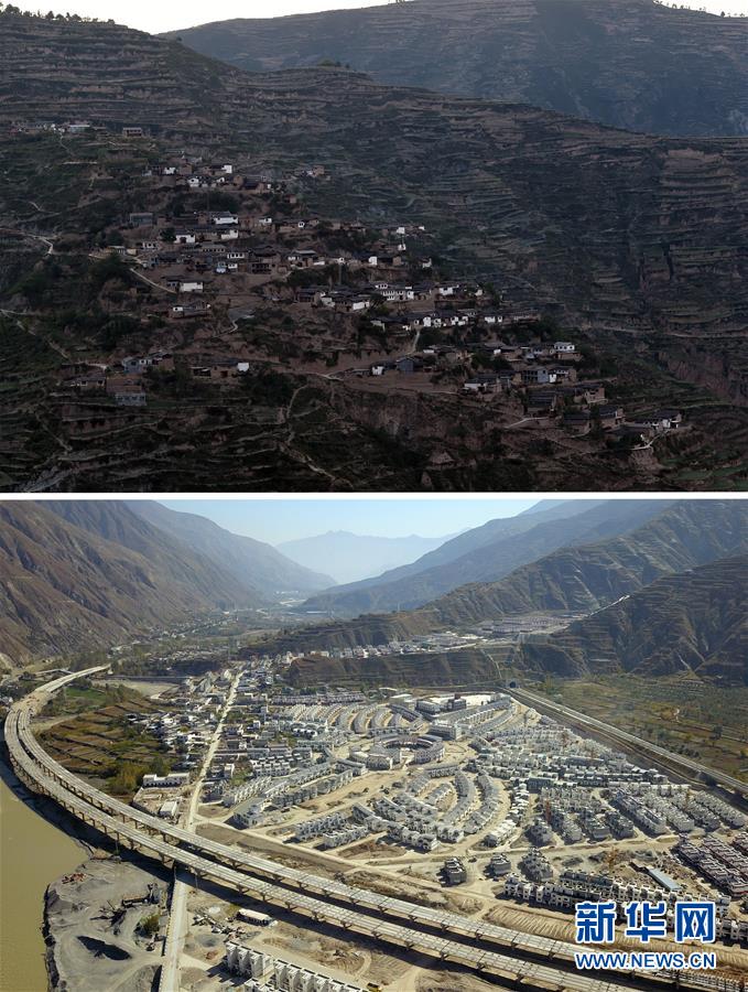 這是一張拼版照片。上圖為隴南市武都區(qū)坪埡藏族鄉(xiāng)腰道村全景(2016年9月1日攝);下圖為隴南市武都區(qū)的“新坪埡”全景(10月31日無(wú)人機(jī)拍攝)。歷經(jīng)3年多的建設(shè),在甘肅省隴南市武都區(qū)白龍江畔,一個(gè)嶄新的“新坪埡”即將建成,預(yù)計(jì)今年年底實(shí)現(xiàn)全面建成搬遷。 坪埡藏族鄉(xiāng)是甘肅省隴南市25個(gè)特困片區(qū)鄉(xiāng)鎮(zhèn)之一,2015年,當(dāng)?shù)卣龀銎簣翰刈遴l(xiāng)易地扶貧搬遷重大決策,對(duì)深山上的8個(gè)村1236戶(hù)5731人實(shí)施易地扶貧搬遷,總投資4.69億元,是甘肅省“十三五”時(shí)期易地扶貧搬遷工程重點(diǎn)建設(shè)項(xiàng)目。 全面建成搬遷后,當(dāng)?shù)卣畬?duì)搬遷安置區(qū)與周邊景區(qū)進(jìn)行整體規(guī)劃,打造民族風(fēng)情和鄉(xiāng)村生態(tài)旅游村;同時(shí)加大群眾專(zhuān)業(yè)技能培訓(xùn),并引進(jìn)企業(yè)實(shí)現(xiàn)群眾本地就業(yè),幫助搬遷群眾增收致富。新華社記者 范培珅攝