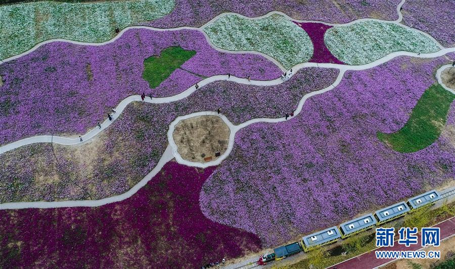 11月2日,游客乘坐觀光小火車觀賞“五彩花?!保o(wú)人機(jī)拍攝)。