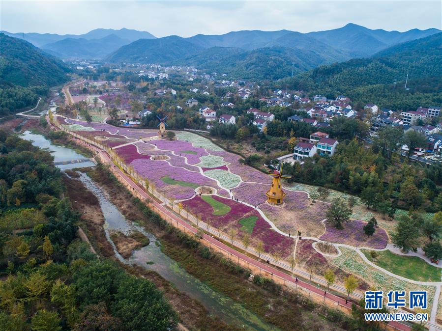 11月2日,空中俯瞰小浦鎮(zhèn)的“五彩花?!?,多彩的花海與金黃的銀杏林構(gòu)成了一幅美麗的秋季風(fēng)景(無(wú)人機(jī)拍攝)。 新華社記者 徐昱 攝