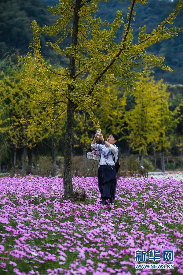 11月2日,游客在金黃的銀杏樹(shù)下觀賞秋色。 新華社記者 徐昱 攝