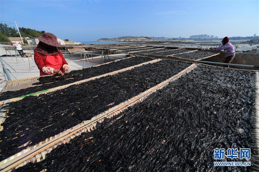 10月24日,福建莆田蔣山村村民在曬紫菜?! ⌒氯A社記者張國(guó)俊 攝
